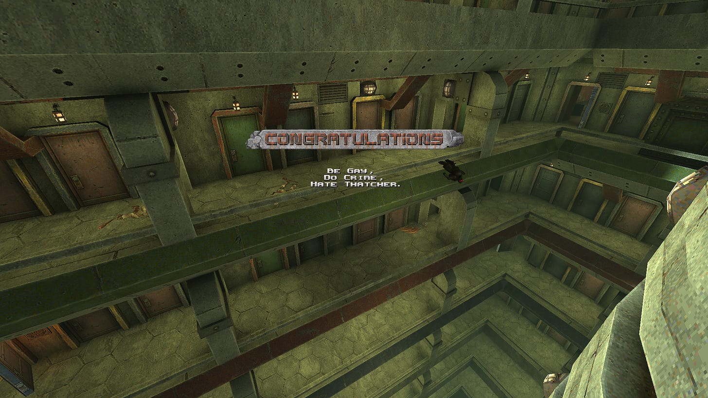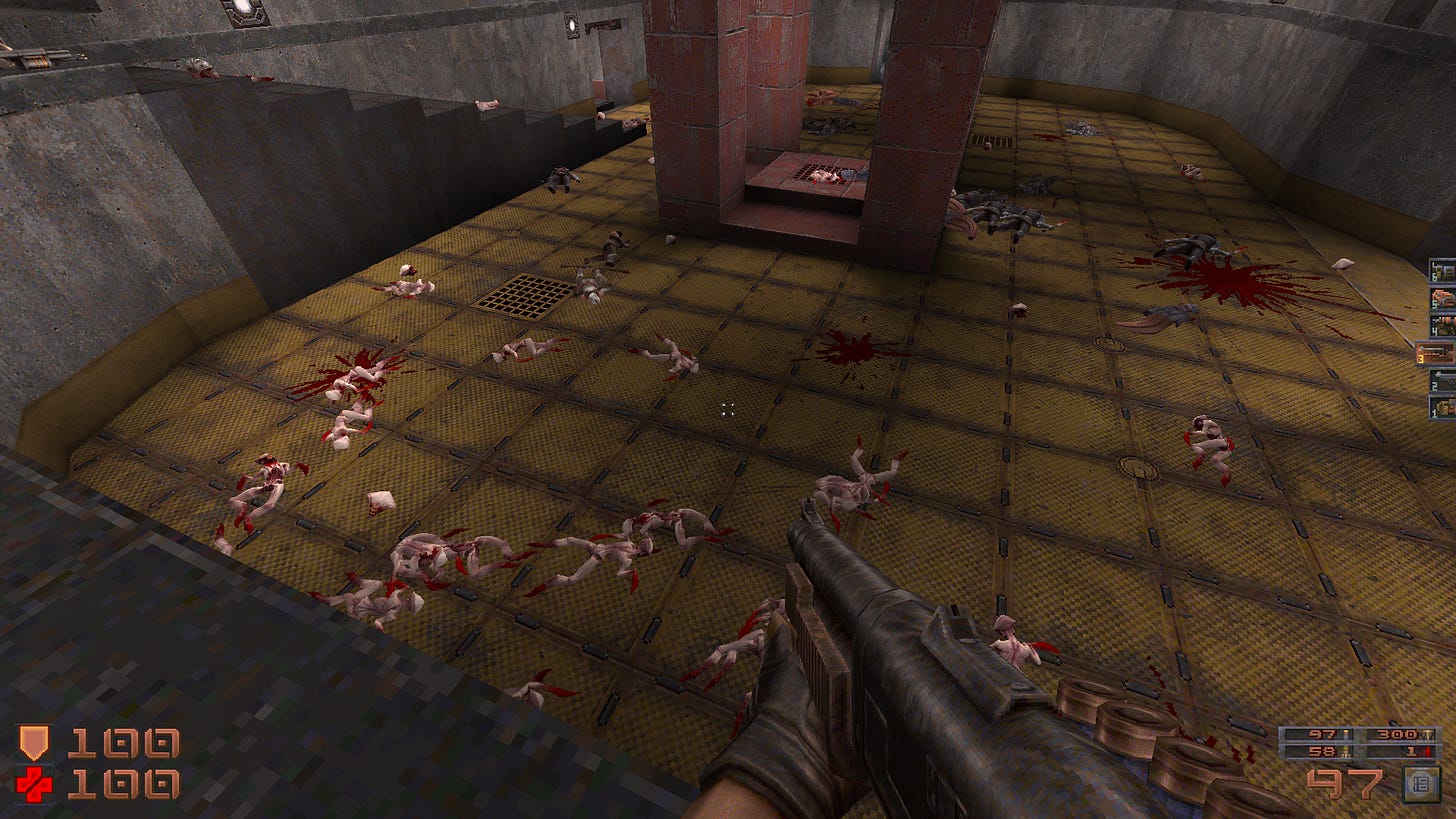 Quake Brutalist Jam 3 is a total conversion mod assembled by dozens of well-regarded map makers. It seems that everyone was encouraged to put their own spin on the level they designed, with only the weapons, enemies, and ‘vibe’ staying constant. The result is impressive. I chipped away at the game while on tour and found it challenging, rewarding, and novel. Recommended.