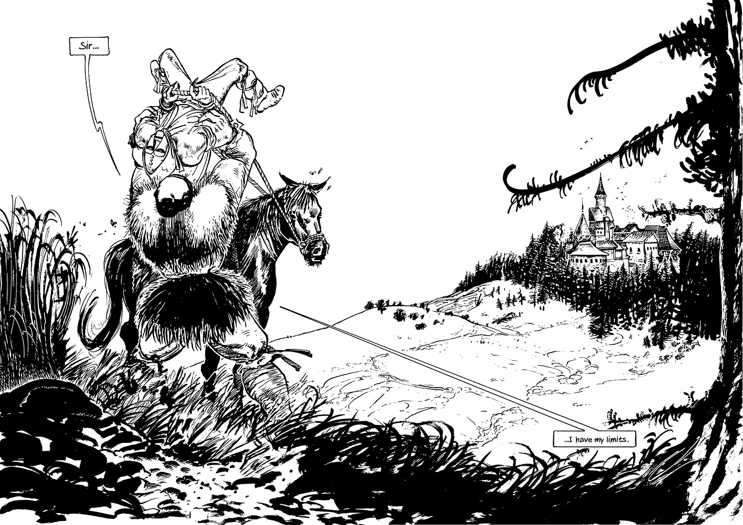 A double-page splash from Ludo that just kills. While it will be colored, the blacks are really selling it already.